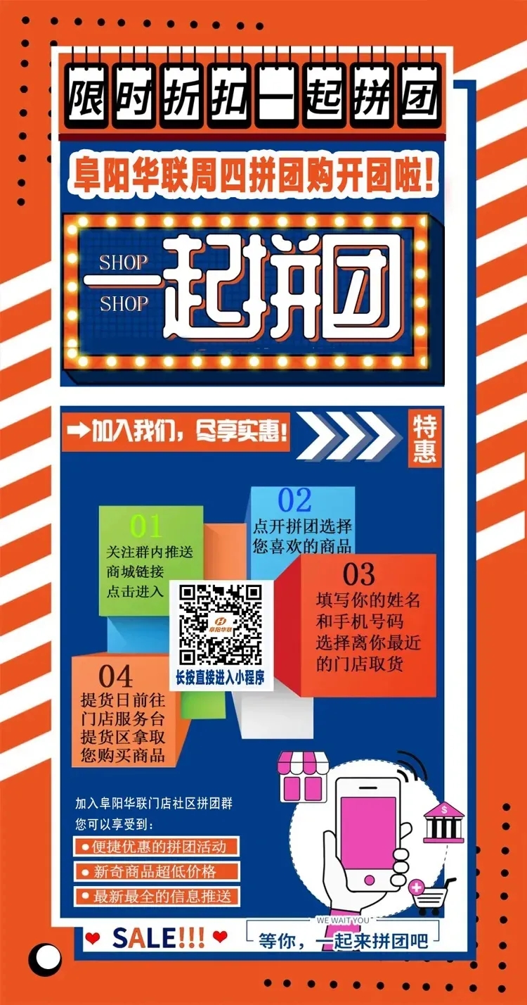阜陽(yáng)華聯(lián)周四拼團,底價(jià)瘋搶 ,一起拼出白菜價(jià)!