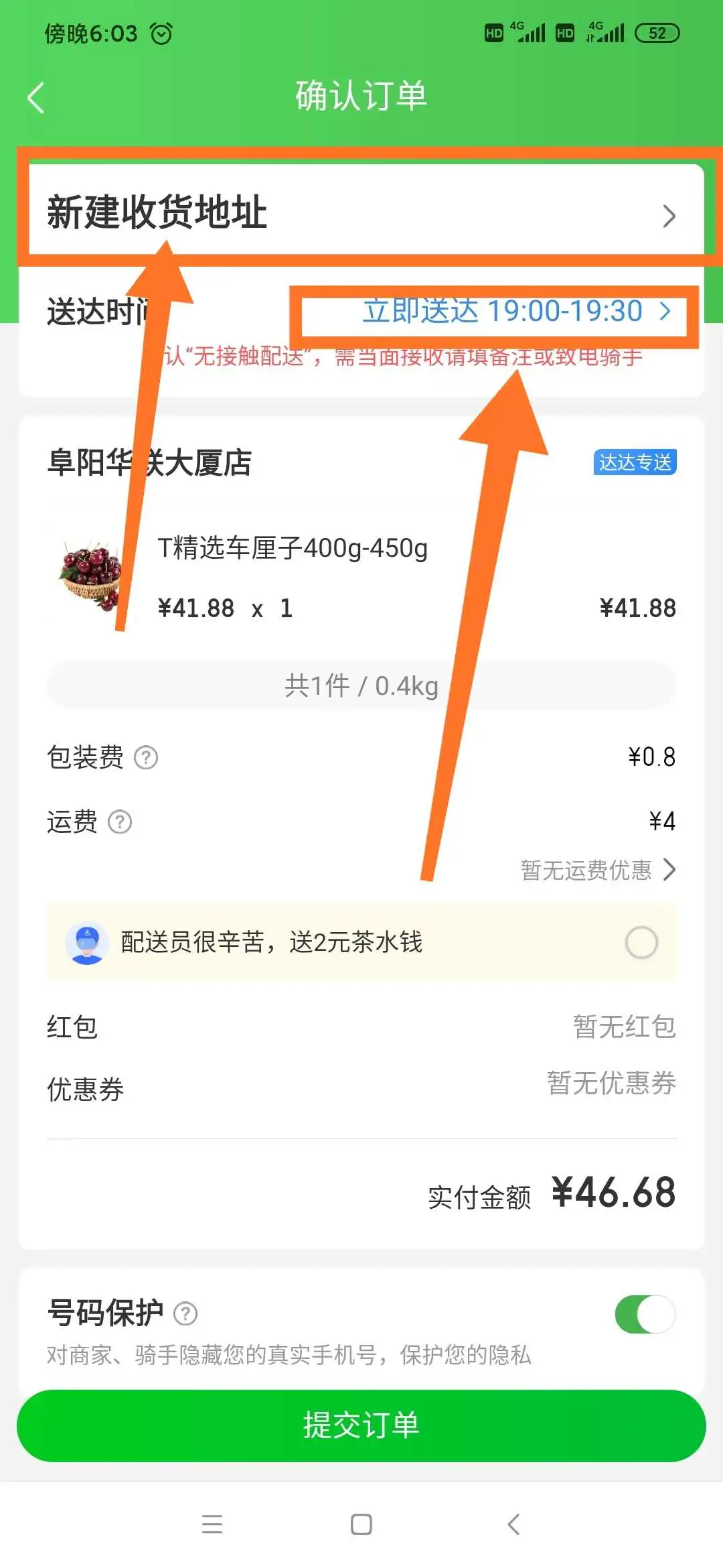 ②點(diǎn)擊提交訂單。