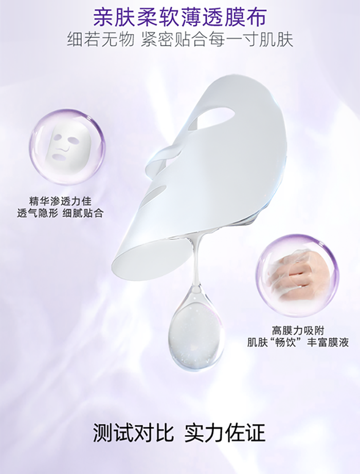 植物膜布,吸附力也大,適合干皮等肌膚,吸收后清洗,會(huì )感覺(jué)皮膚豐盈飽滿(mǎn),補水又提亮。