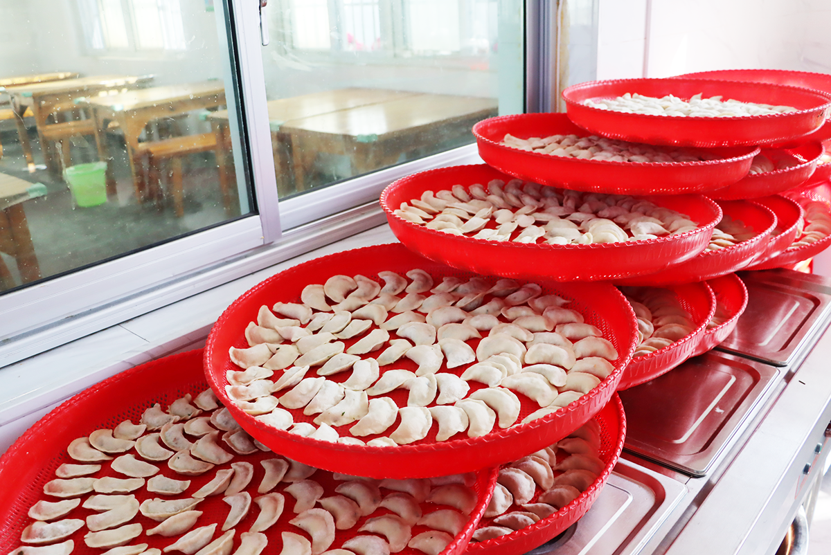 志愿者們早早就準備好了韭菜、面粉、豬肉等食材切菜、拌餡、和面、包捏……大家分工明確,相互協(xié)作一起為老人籌備敬老餃子宴。