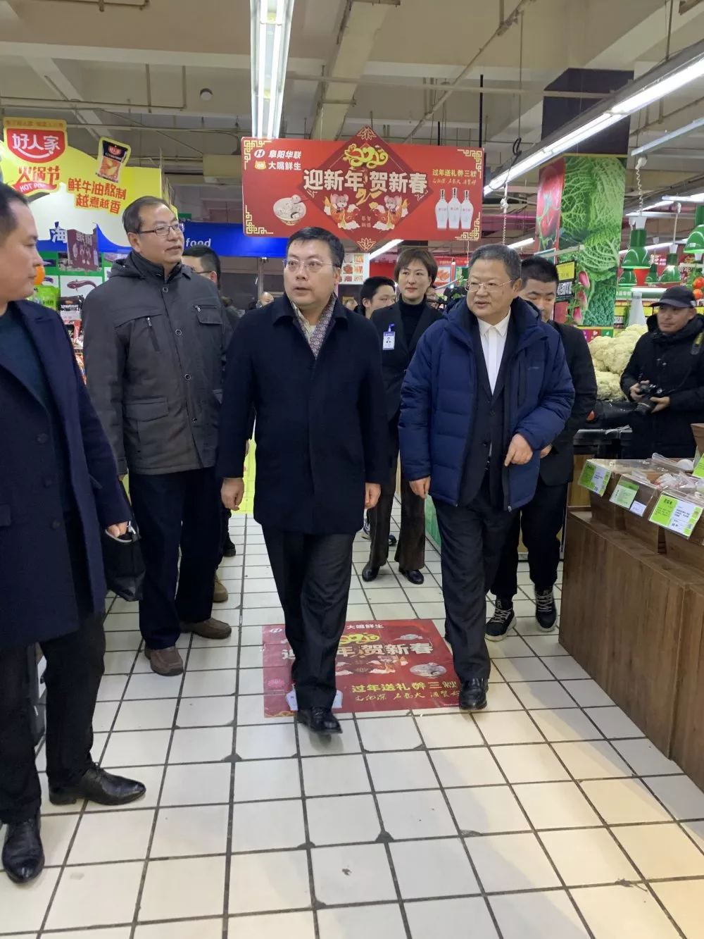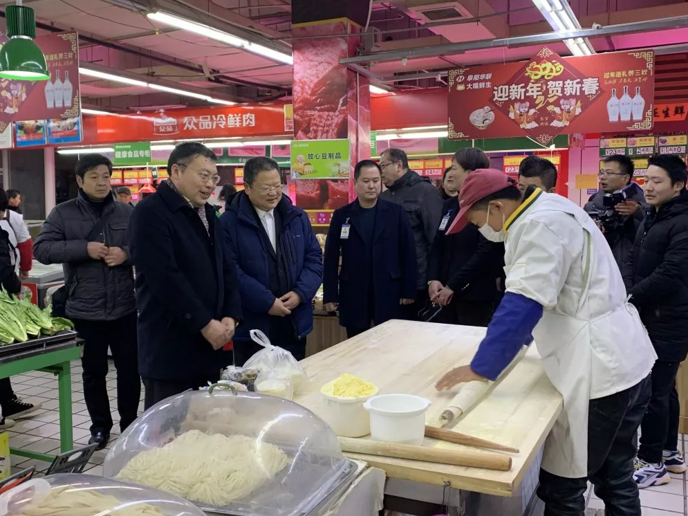 【阜陽(yáng)華聯(lián)】阜陽(yáng)市委常委、副市長(cháng)劉勁松一行視察我華聯(lián)超市元旦節日市場(chǎng)供應情況。