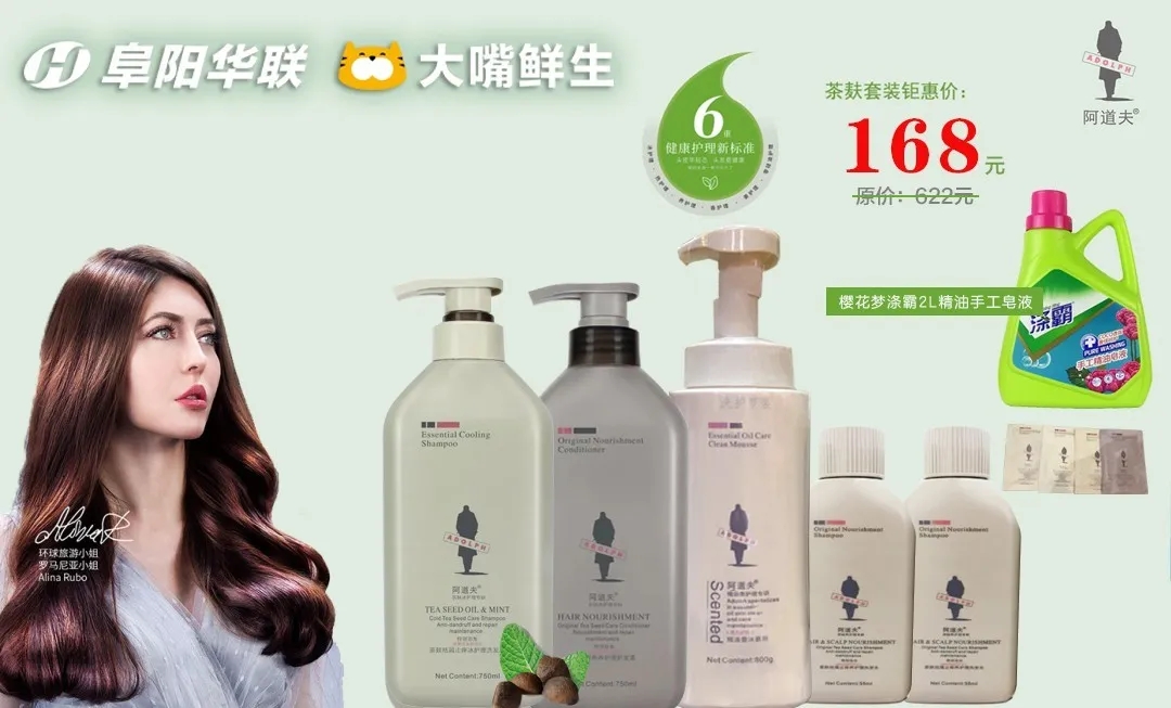 阿道夫750g茶麩洗護2瓶+阿道夫800g精油潔面慕斯一瓶+55g茶麩旅行裝2瓶+10g茶麩袋包4袋