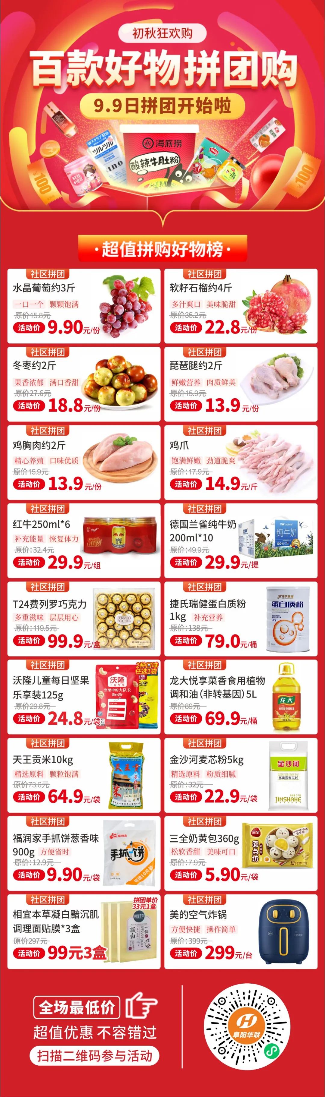 真實(shí)惠 | 阜陽(yáng)華聯(lián)優(yōu)選9·9超值拼團好物火熱開(kāi)拼!